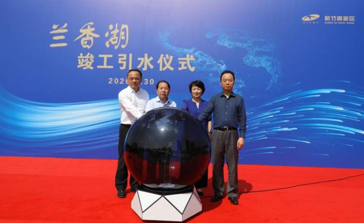 6月30日上午,閔行第一湖蘭香湖舉行了竣工引水儀式。