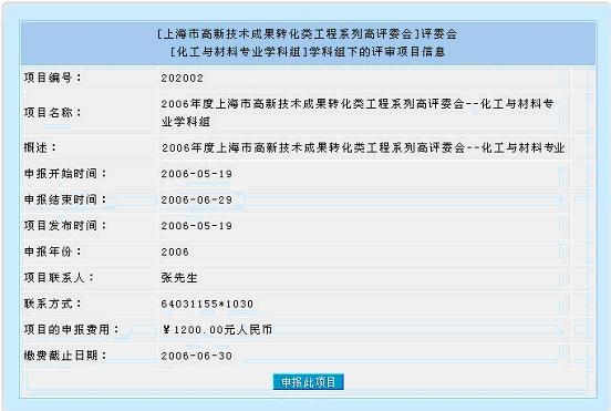 申報人可查看申報的開始注冊時間、結束時間、評審(認證)費用、聯系人、聯系方式等信息。
