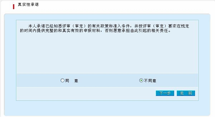 點擊“申報此項目”按鈕,可進入“真實性承諾”填寫界面,如下圖: