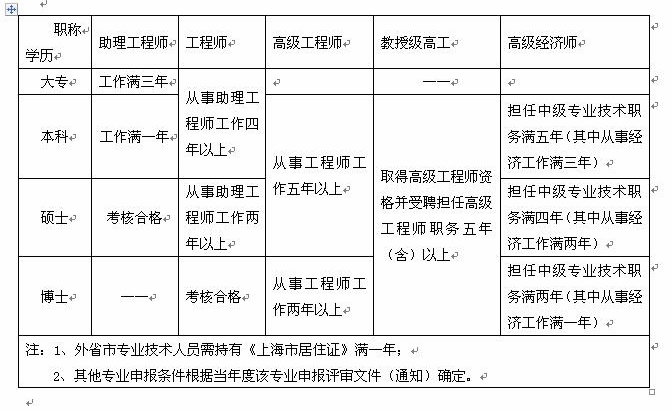1、外省市專業技術人員需持有《上海市居住證》滿一年;