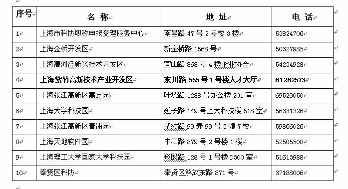 4 上海紫竹高新技術產業開發區 東川路555號1號樓人才大廳 61262573