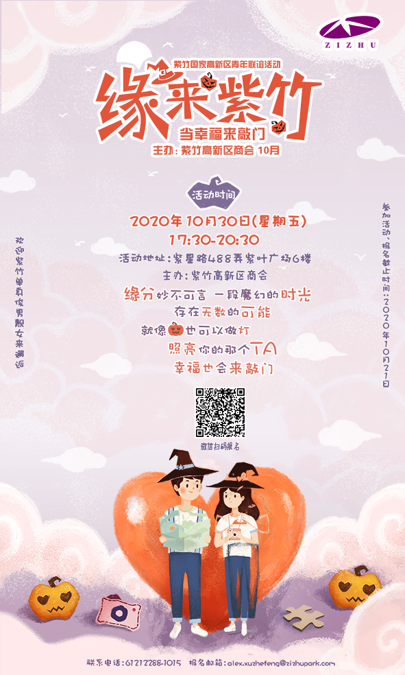 為推進紫竹高新區文化建設,為適齡青年搭建良好的交友、交流平臺,紫竹商會將于2020年10月30日(星期五)17:30-20:30舉辦紫竹高新區“緣來紫竹·當幸福來敲門”第十二屆大型青年聯誼活動。