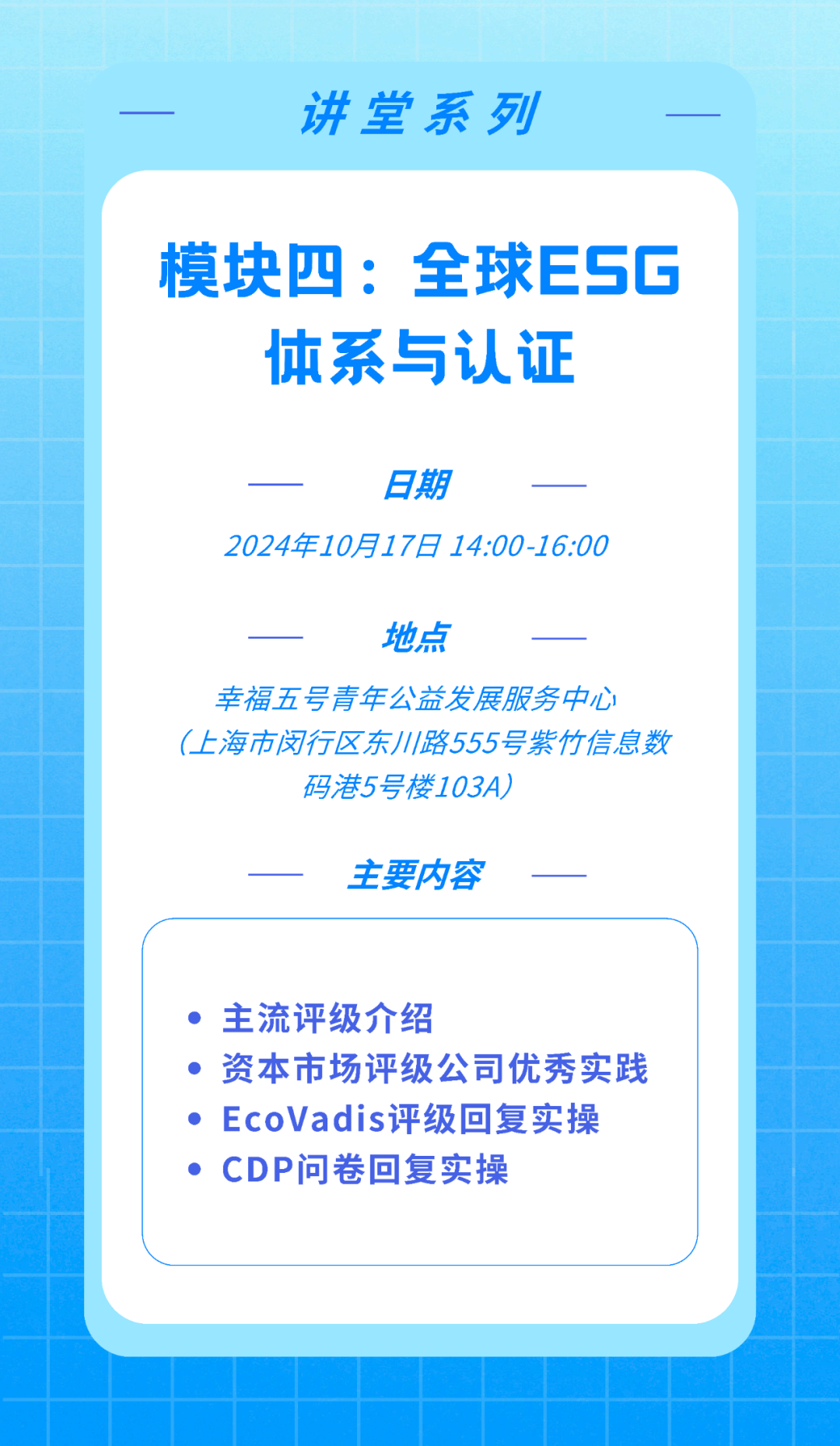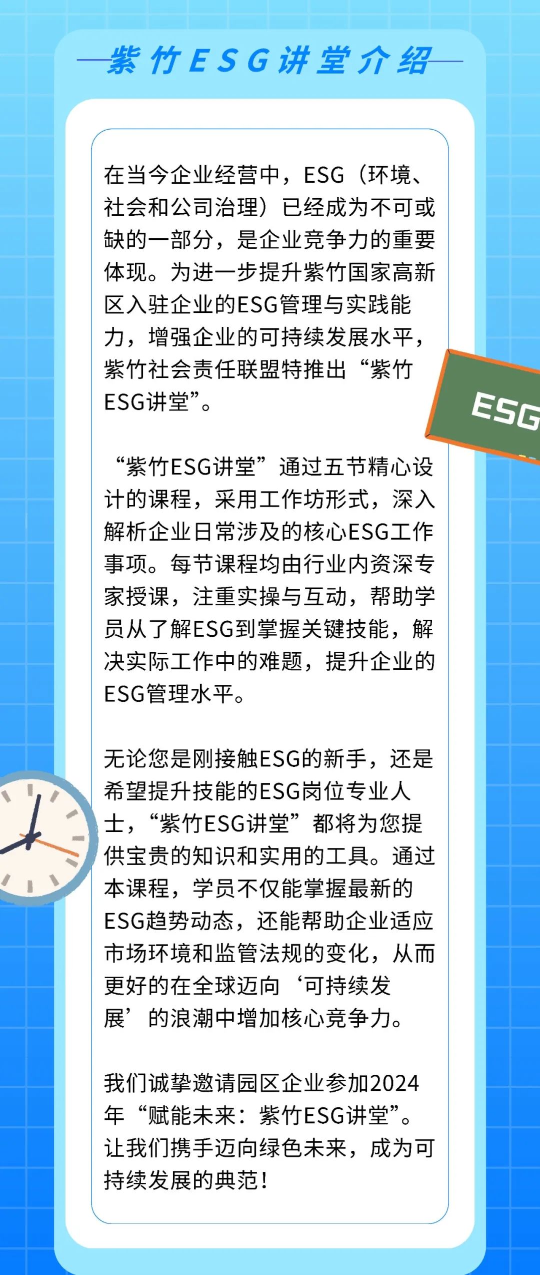 活動報名|“紫竹ESG講堂”系列培訓(xùn)之模塊四:全球ESG體系與認(rèn)證,即將開講!