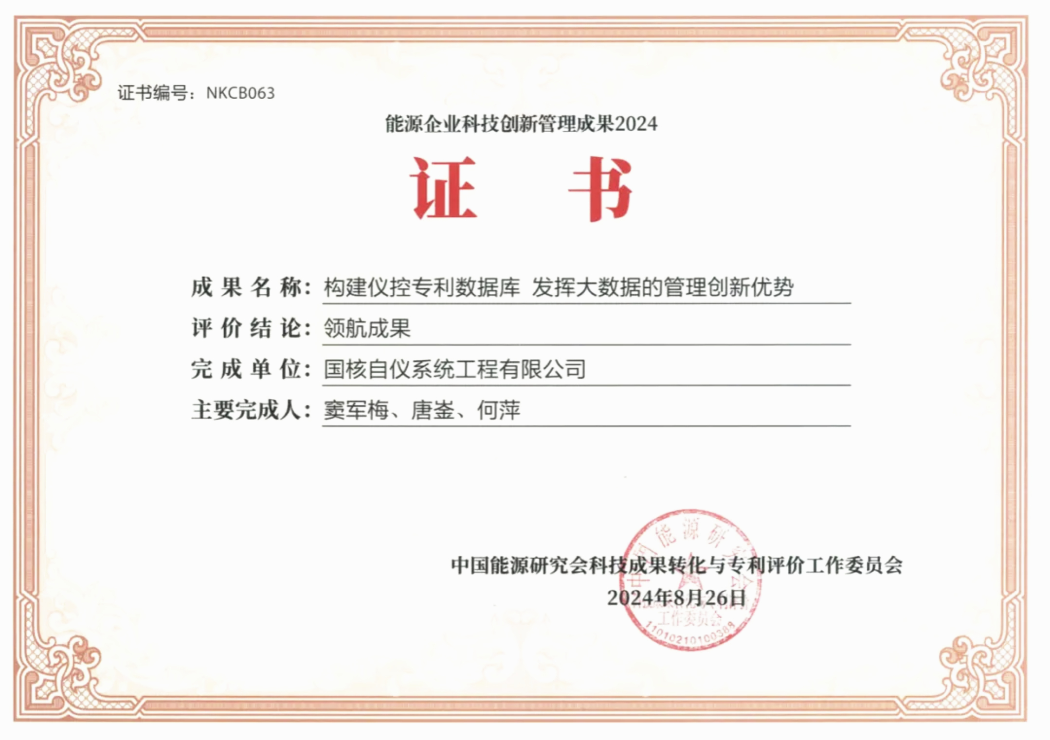 國核自儀科技創(chuàng)新管理成果榮獲“行業(yè)級”榮譽(yù)