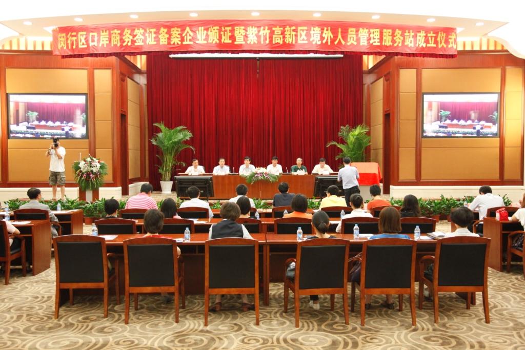 2012年8月16日,閔行區口岸商務簽證備案企業頒證暨紫竹高新區境外人員管理服務站成立儀式在紫竹高新區會議中心隆重舉行