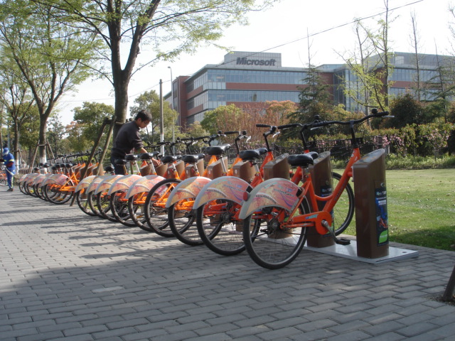 目前,閔行區免費租賃公共自行車在園區正式開始投入使用
