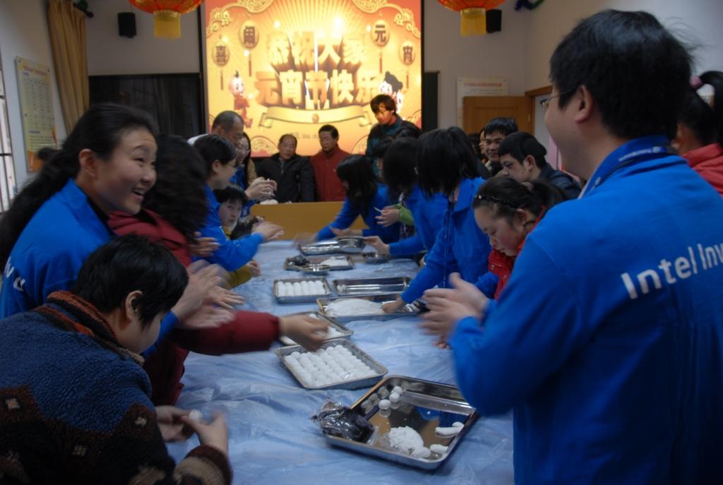 為豐富吳涇鎮(zhèn)“陽光之家”學(xué)員生活,讓他們感受元宵節(jié)這一傳統(tǒng)節(jié)日的歡樂氣氛,2月17日上午10點(diǎn),Intel公司近20名志愿者在Intel運(yùn)營總監(jiān)George Mi先生率領(lǐng)下來到“陽光之家”,和學(xué)員們開展了一系列慶祝活動(dòng):包湯圓、吃湯圓、猜字謎、互動(dòng)表演等等