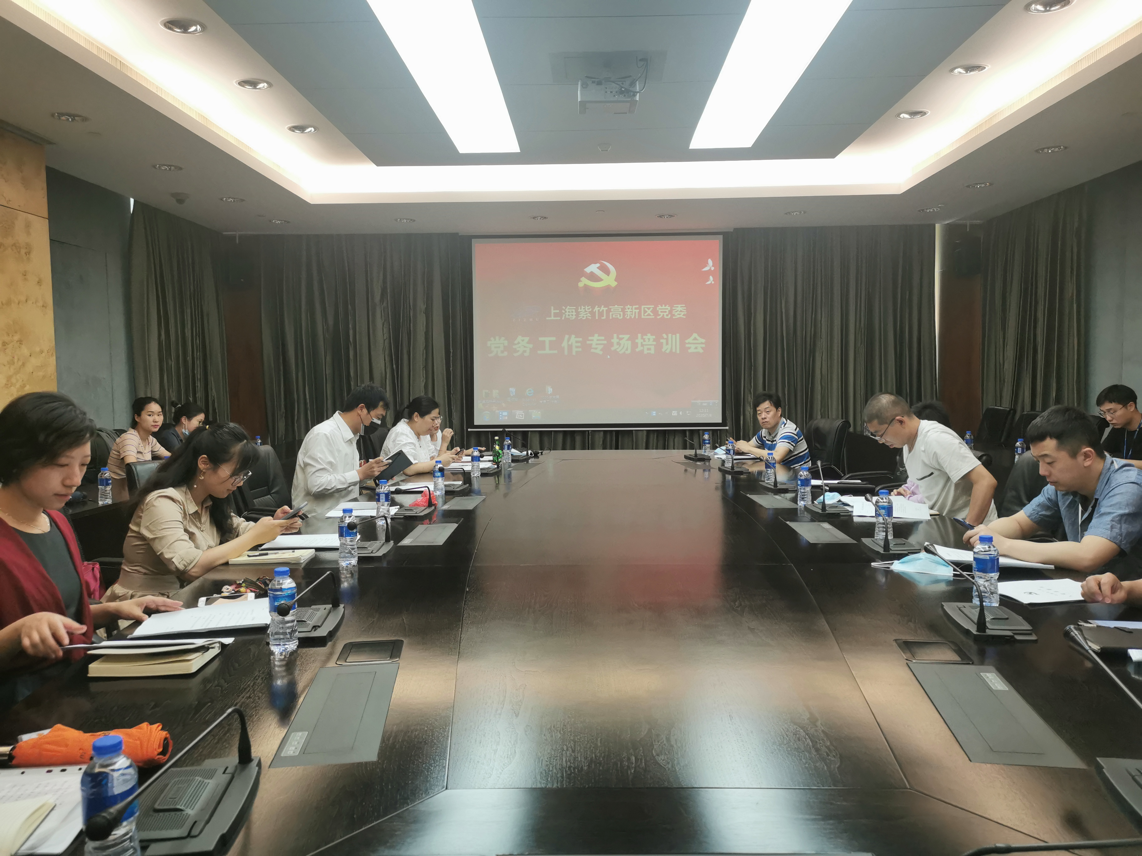 2020年7月8日,在黨的生日剛過不久,為進一步加強各企業黨組織建設、提升黨務工作業務能力和綜合素質、充分發揮黨組織戰斗堡壘作用,紫竹高新區黨委舉辦了2020年黨務工作人員培訓班,各企業支部書記和工作人員共計40人參加了此次培訓,高新區黨委特邀了吳涇黨建服務中心的老師前來授課。