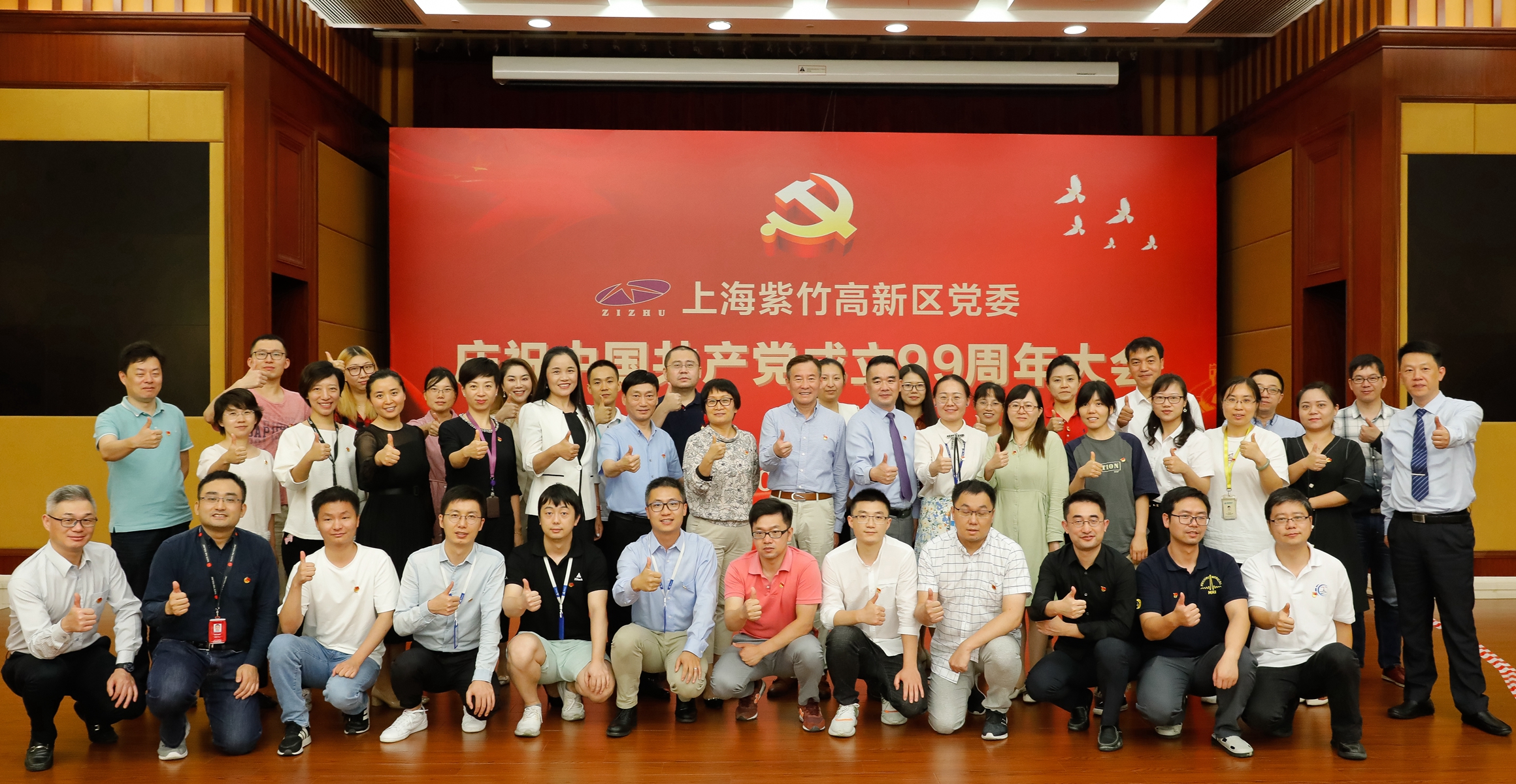 ?2020年6月24日,紫竹高新區黨委在高新區會議中心隆重召開慶祝中國共產黨成立99周年大會。高新區黨委副書記錢明華作了黨委工作總結,高新區黨委委員、工會主席、人力資源總監盧羿宣讀黨委三項表彰決定,會議向抗擊疫情先進個人、黨員科技標兵、學習強國活動優秀組織者頒發了獎杯和獎金,吳涇鎮黨委書記楊其景以“傲立浦江第一灣、勇擔時代新使命”為題為大家作了“四史”學習教育微黨課,高新區黨委書記、副總經理駱山鷹