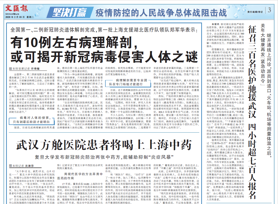 媒體中的紫竹企業||征召三百名醫護馳援武漢 四小時超七百人報名
