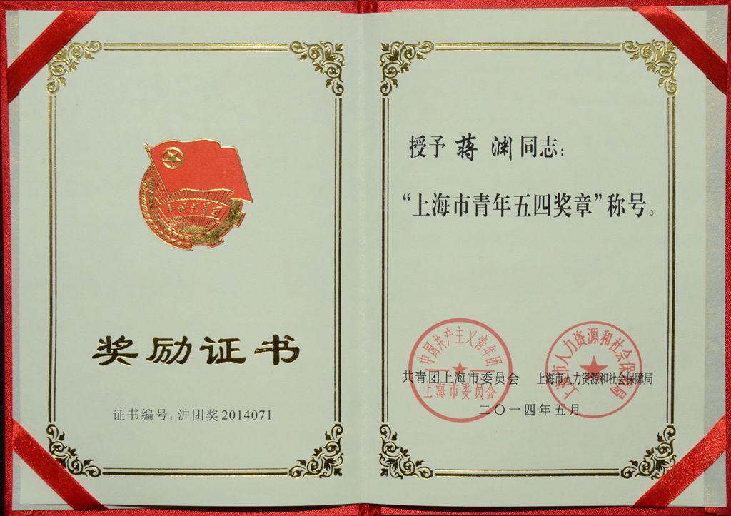 至純潔凈公司董事長蔣淵榮獲“上海市青年五四獎章”