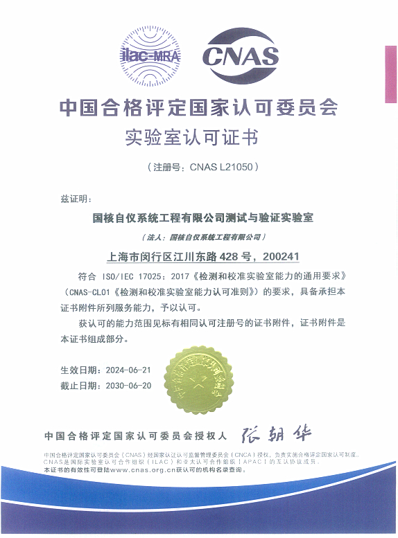 國(guó)核自儀測(cè)試與驗(yàn)證實(shí)驗(yàn)室順利通過中國(guó)合格評(píng)定國(guó)家認(rèn)可委員會(huì)(CNAS)認(rèn)可