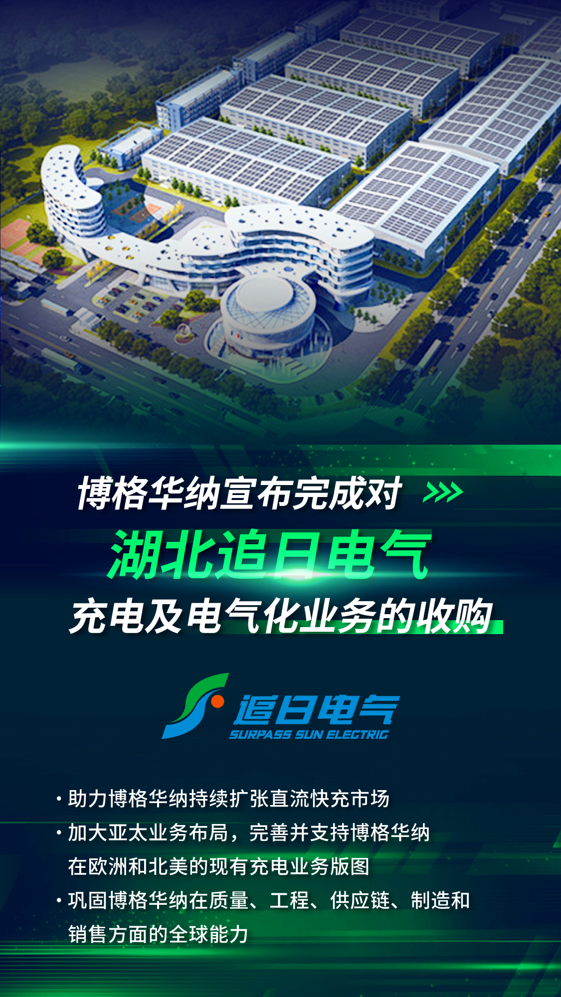 博格華納完成對湖北追日電氣充電及電氣化業務的收購