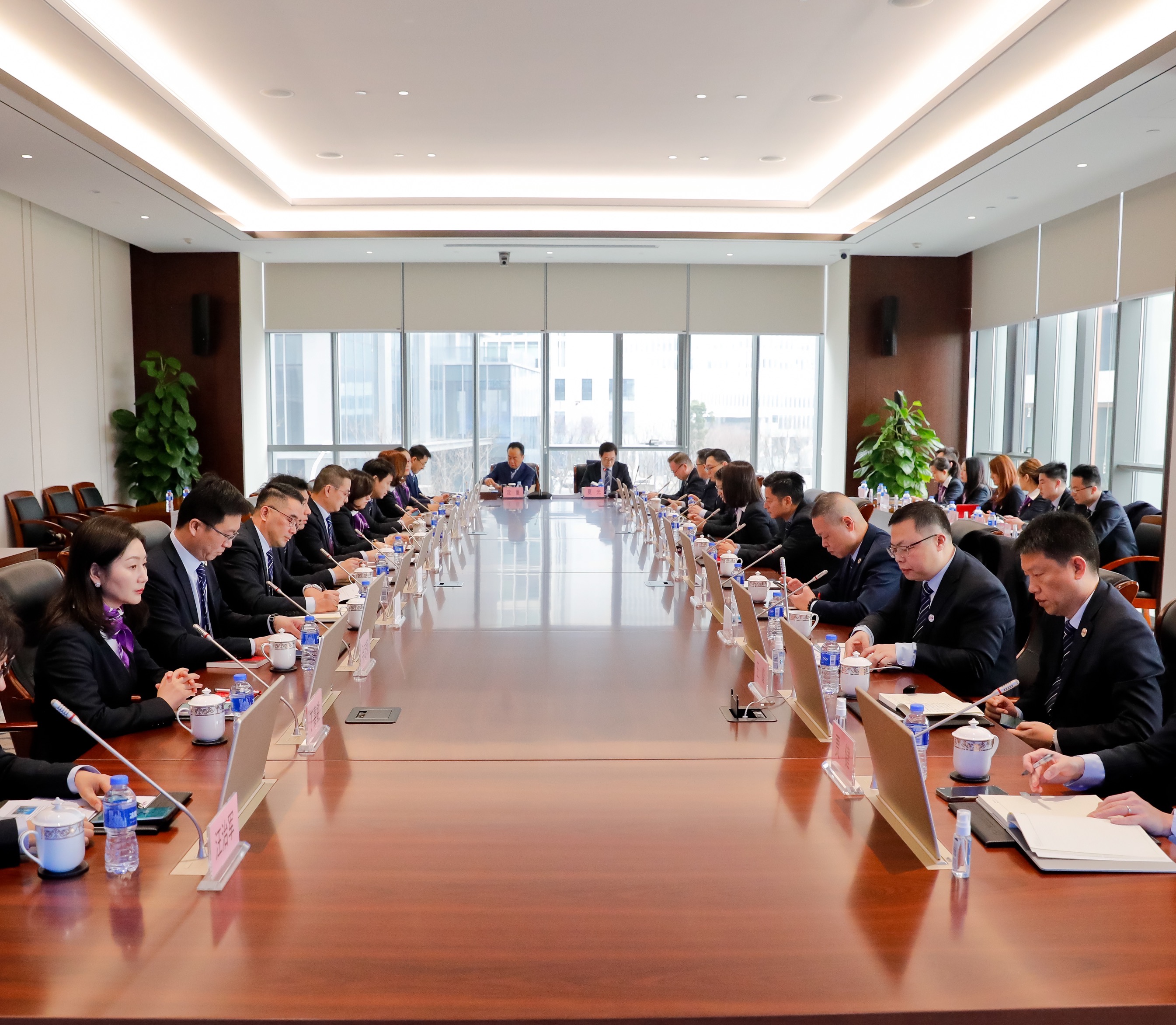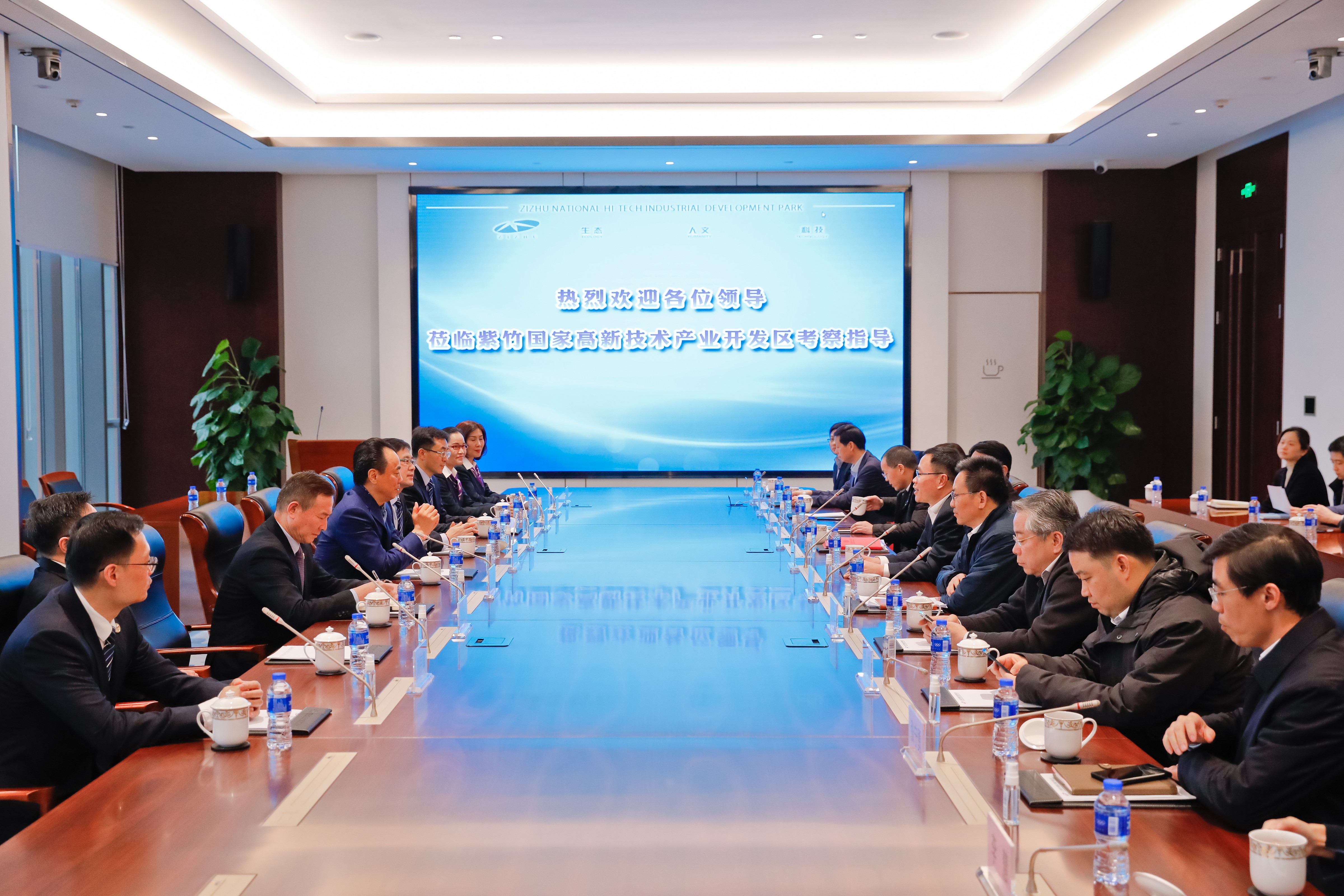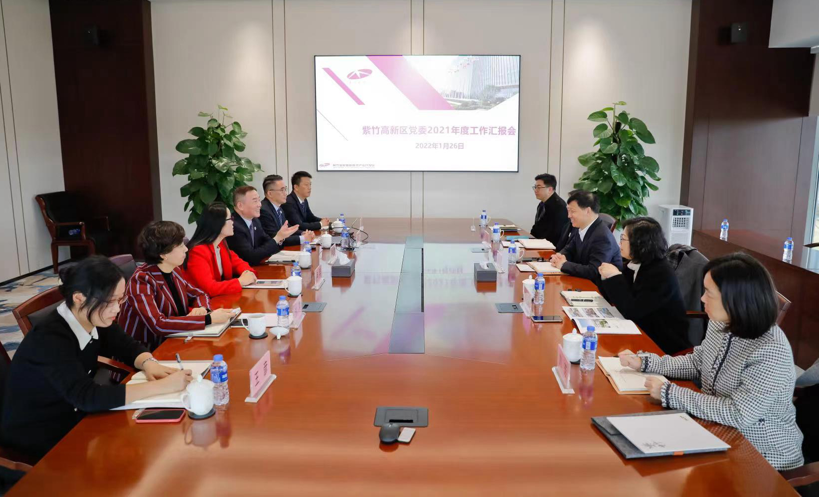 2022年1月26日上午,閔行區吳涇鎮黨委書記金海民、黨委副書記吳音英、黨委委員吳云燕、黨委委員劉芳、黨政辦負責人彭斌一行來紫竹高新區調研,高新區黨委書記、副總經理駱山鷹,高新區黨委委員、工會主席、人力資源總監盧羿,高新區黨委副書記錢明華,高新區黨委委員、團委書記劉萍,黨委辦公室主任王峰等參加了會議。