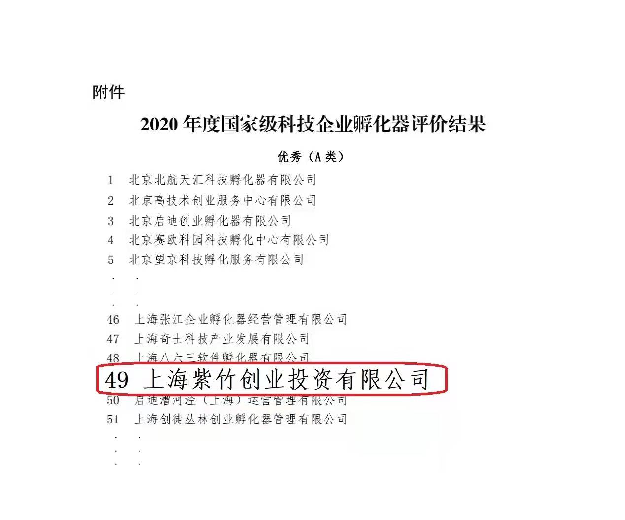 近日,在科技部火炬中心公布的國家級科技企業孵化器2020年度評價名單中,紫竹創投喜獲優秀(A類)等第,首次站上了全國科創成績的最高舞臺。本次全國孵化器年度評價工作,經科技部火炬中心組織開展,通過數據和總結上報、統計計算、專家打分和地方評價等嚴格篩選,最終紫竹創投從全國1287家國家級科技企業孵化器中脫穎而出,成為上海市僅有的12家獲評優秀等第的孵化器之一。