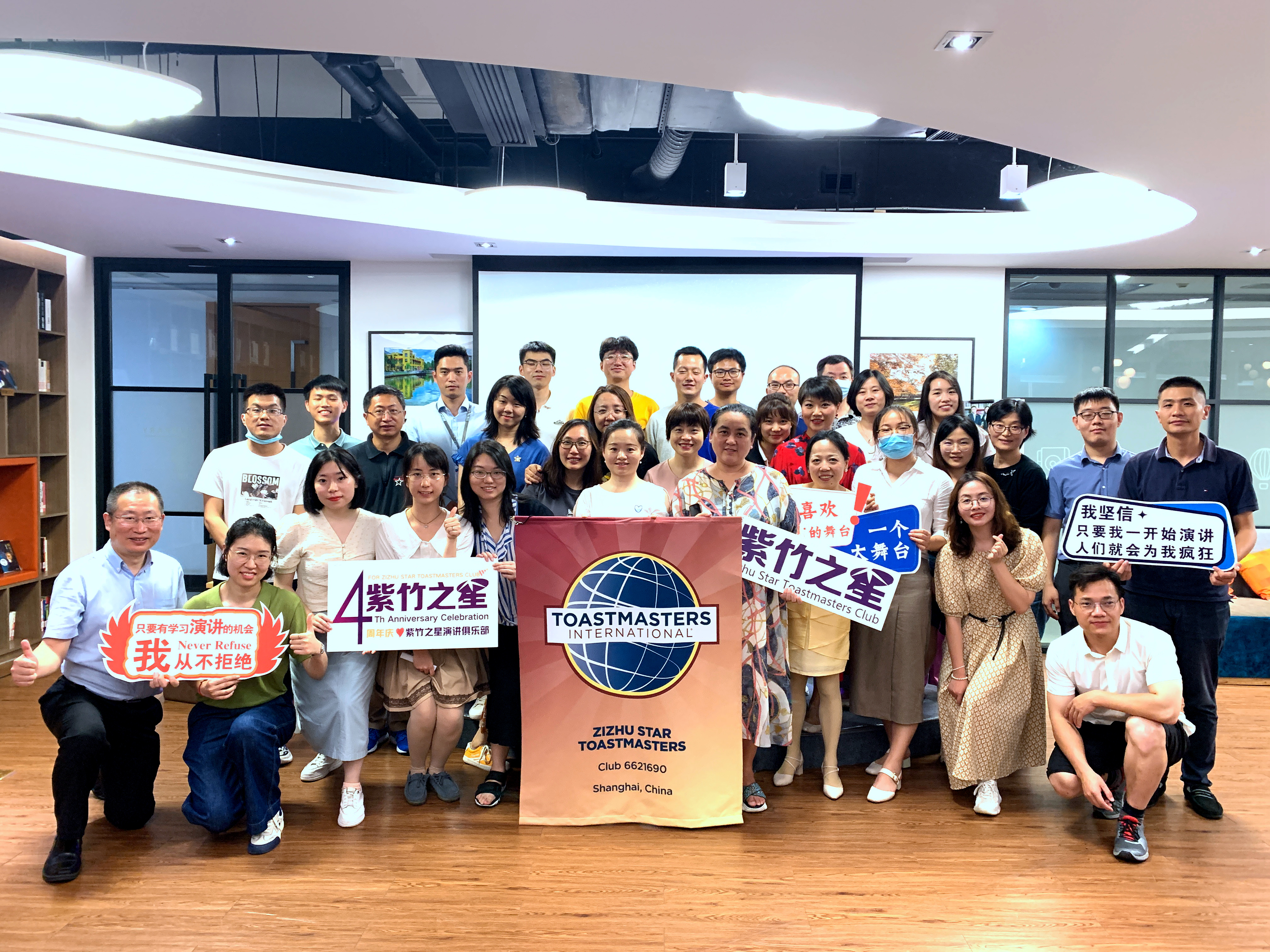 2021年7月29日晚,紫竹之星演講俱樂部在 “幸福5號”青年中心舉辦“這就是紫竹之星”四周年慶典主題活動,吸引了高新區(qū)內(nèi)英特爾、西部數(shù)據(jù)、昂際航電、商飛客服等企業(yè)40余名青年參與。慶典由俱樂部官員團隊精心策劃和設(shè)計,通過“演”與“講”的方式,展現(xiàn)俱樂部在幫助青年鍛煉中英文公眾演講能力和提升職場競爭力的核心特色。