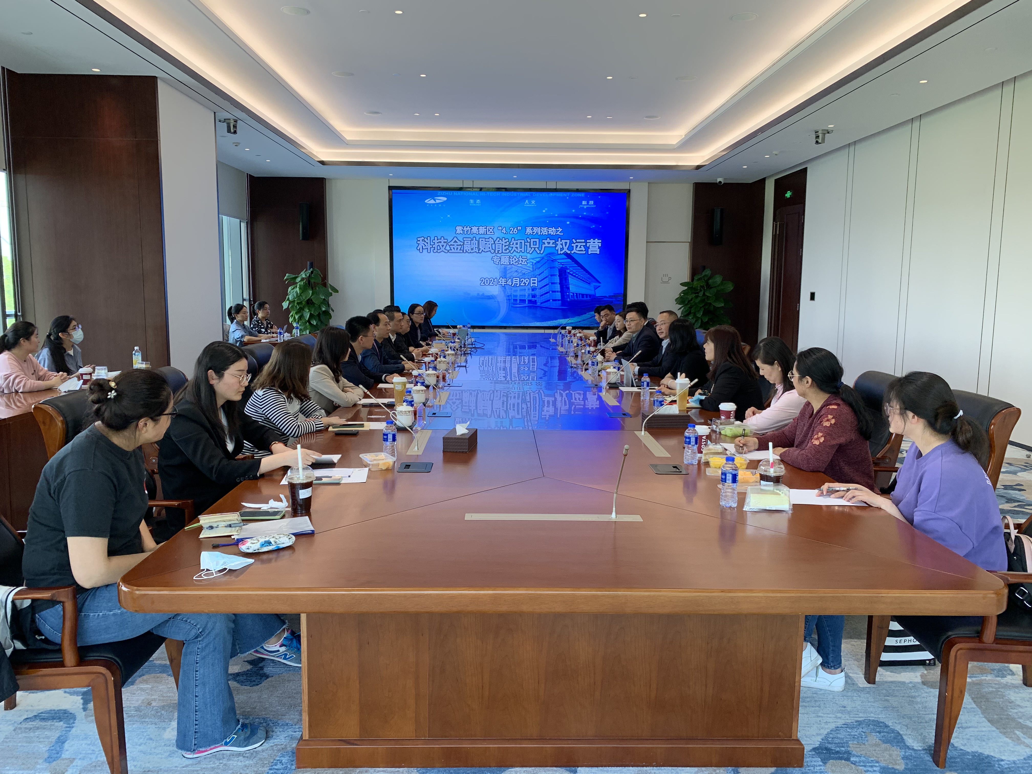 2021年4月29日下午,紫竹高新區(qū)在本部大樓二樓舉辦“科技金融賦能知識產權運營”專題論壇。特邀上海市知識產權局孔元中處長、上海應用技術大學方曦教授、建設銀行、交通銀行、興業(yè)銀行等金融機構以及高新區(qū)企業(yè)代表參加研討,高新區(qū)投資總監(jiān)劉宇鋒、法務總監(jiān)李敏、財務執(zhí)行總監(jiān)蔡光平等出席活動,高新區(qū)企業(yè)代表30余人參加。