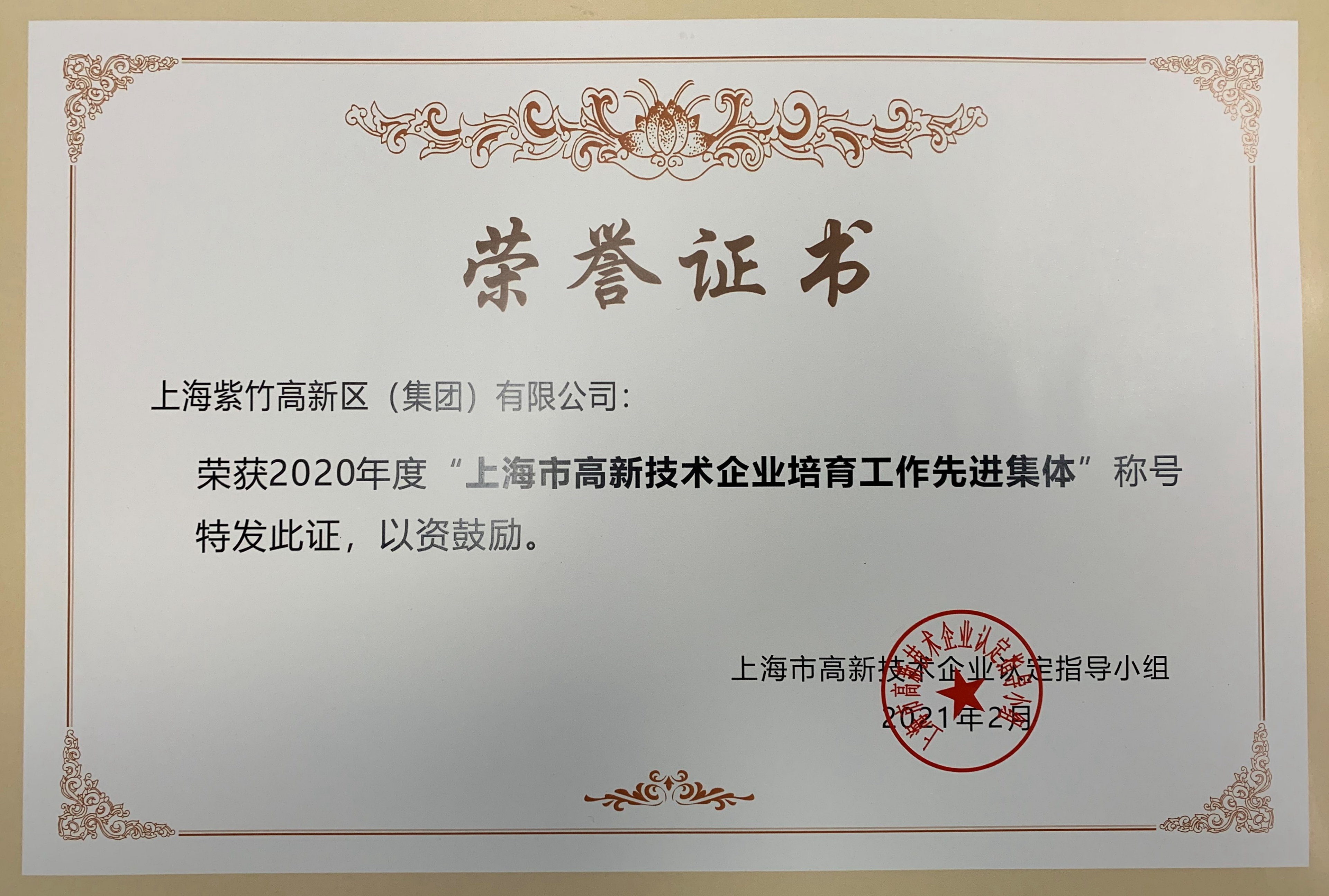 紫竹高新區榮獲2020年度“上海市高新技術企業培育工作先進集體”和“上海市高新技術企業統計工作先進集體”稱號