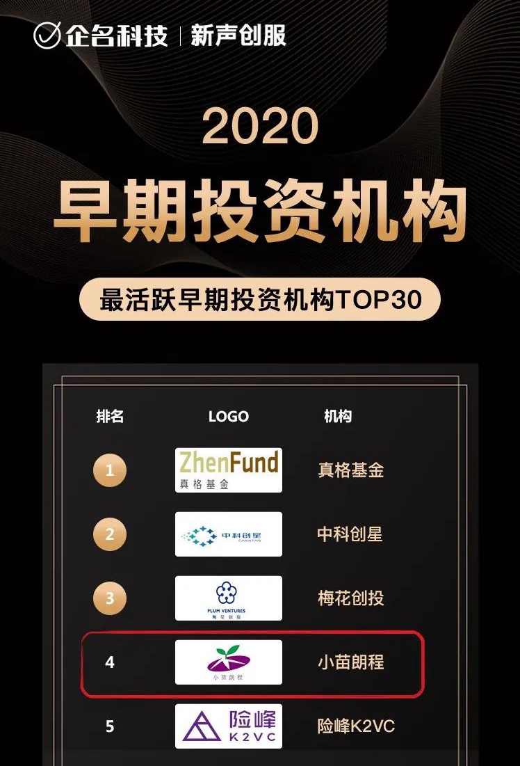 紫竹小苗基金旗下小苗朗程榮膺“2020年度中國投資機構系列榜單”四項大獎