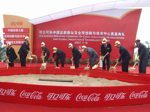 全球飲料巨頭可口可樂本土以外最大研發中心昨日在上海破土動工。這一斥資8000萬美元的項目包括三部分,除研發中心外,還包括可口可樂中國區總部大樓及濃縮液主劑項目工廠。三個項目均坐落于上海閔行區紫竹科學園區,占地12萬平方米,預計將在2008年底竣工。