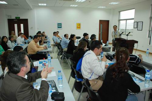 2008年10月24日,由墨西哥、智利多家知名企業(yè)組成的國際商務(wù)代表團(tuán)一行近40人來紫竹園區(qū)交流考察,紫竹商會副會長孫法泉、秘書長徐一文熱情接待了來訪客人,在聽取了園區(qū)的總體介紹后,企業(yè)家們對園區(qū)近年來在各方面所取得的顯著成就表示贊賞,并就園區(qū)的綜合發(fā)展話題進(jìn)行了交流與探討。