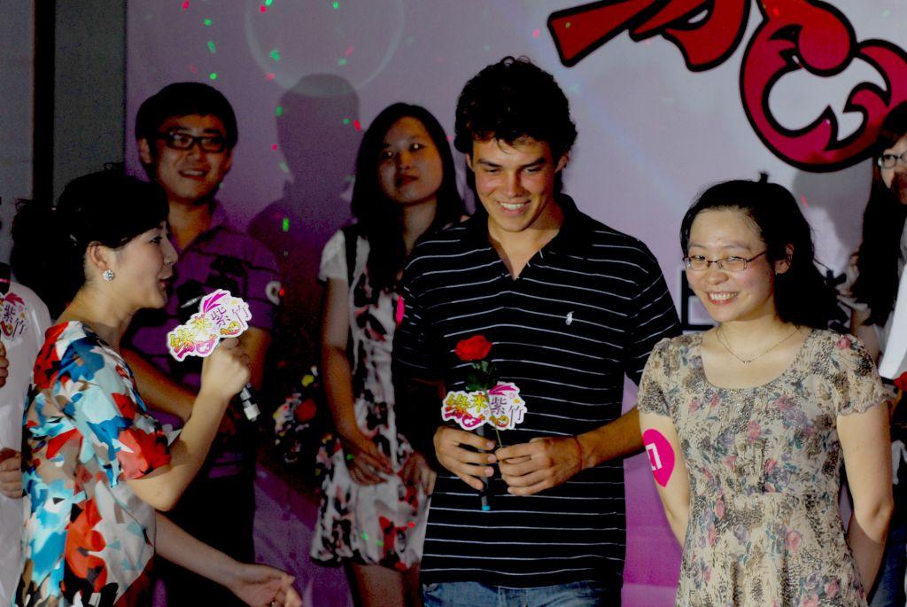 “愛情碰碰看”、“尋找愛情的下落”、“愛情魔法箱”、“愛要大聲說出口”、“舞蹈模仿秀”、“愛的炫舞”等新穎獨特的互動游戲讓男生女生們緣隨心動,在園區美麗的濱江大道畔演繹著緣分的天空。最后,全場集體熱舞將聯誼活動推向高潮,快樂、浪漫氣息彌漫整個夜空。