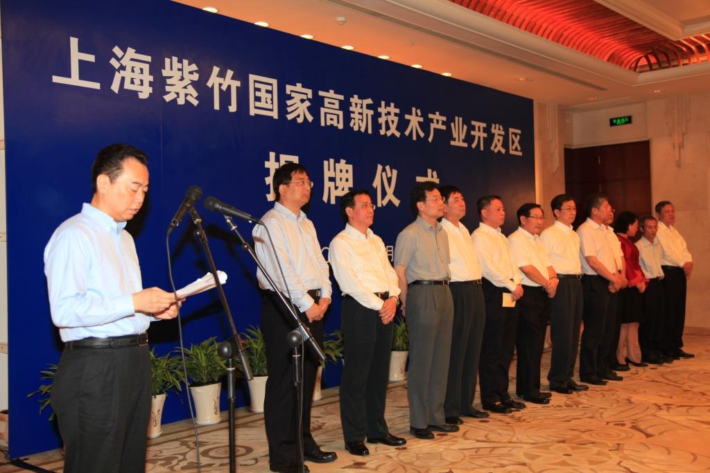 經(jīng)國(guó)務(wù)院批復(fù)同意,上海紫竹高新技術(shù)產(chǎn)業(yè)園區(qū)升級(jí)為國(guó)家高新技術(shù)產(chǎn)業(yè)開發(fā)區(qū)。2011年7月3日,全國(guó)政協(xié)副主席、科技部部長(zhǎng)萬(wàn)鋼,上海市委副書記、市長(zhǎng)韓正出席并共同為上海紫竹高新技術(shù)產(chǎn)業(yè)開發(fā)區(qū)揭牌。上海市副市長(zhǎng)沈曉明主持揭牌儀式。
