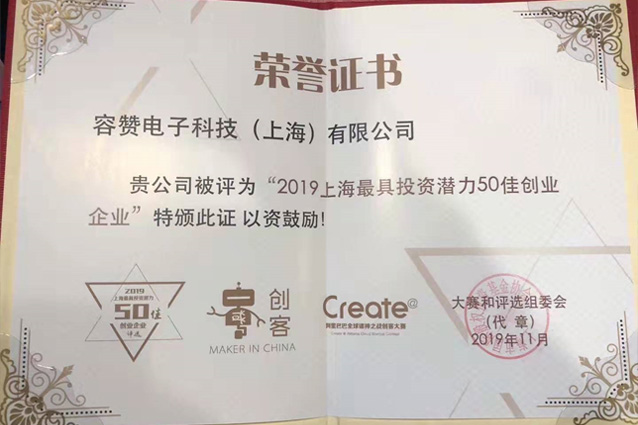 紫竹創投積極推薦容贊電子對接融資渠道和參加賽事評選,緩解企業初期資金壓力大的現狀。容贊電子近期除獲得50佳最具投資潛力獎項外,還取得了2019年上海市創新創業大賽區級立項、上海市EFG創業基金雛鷹計劃獲評等獎項資質,得到了政府機構、業內專家的廣泛認可和好評。