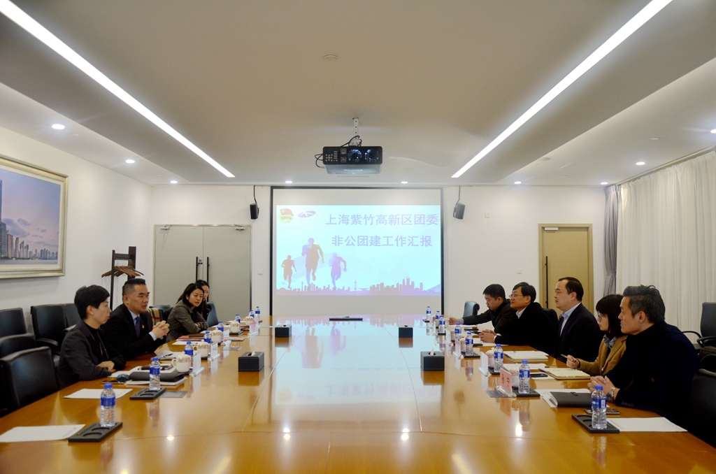 2020年1月16日上午,團中央基層建設部副部長柏貞堯、團中央組織發展處干部吳博等一行來到紫竹高新區,就高新區“非公”團建工作開展進行調研,團上海市委副書記鄔斌、團上海市委基層工作部部長任浡,團閔行區委書記徐豪、團閔行區委副書記張潔,紫竹高新區黨委副書記錢明華、團委書記劉萍、接待辦主任孫永潔等陪同調研。