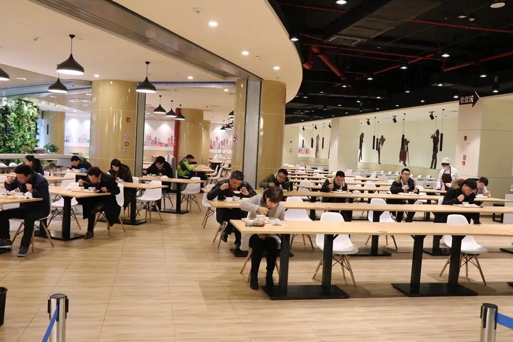 在分時限流上,采用“一人一桌,同側就坐”的方式,根據不同時段安排企業客戶分時就餐,于是就出現了一個人靜靜地享受美食,午餐吃出了高考的感覺。