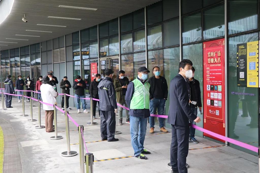 不打無準備之戰,是紫竹高新區“一手抓防控,一手抓復工”的工作準繩。此前,高新區的工作人員對人流動線進行了嚴密規劃,并以模擬演習的形式熟練各項流程,為確保今日紫葉廣場和紫竹餐廳各流程順暢和秩序井然打下了堅實的基礎。