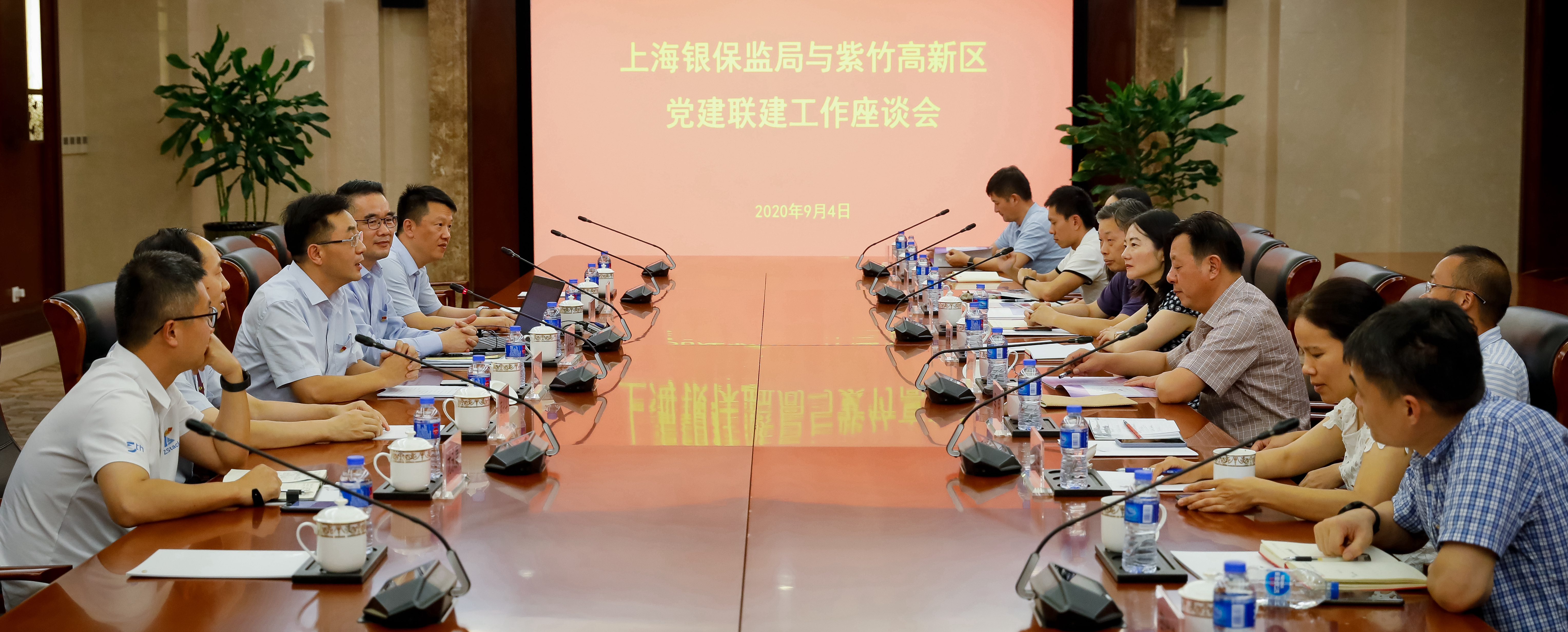 2020年9月4日下午,在上海銀保監局一級巡視員李虎、統信處處長吳鈺、普惠處處長馮暉等帶領下,銀保監局統信處、普惠處兩處黨組織20多名黨員來紫竹高新區開展黨建聯建活動。紫竹高新區副總經理兼財務總監陳衡、黨委副書記錢明華分別介紹了高新區經濟發展與黨建主要工作,紫竹高新區財務執行總監蔡光平、總經理辦公室主任馬志鋼、黨委辦公室主任王峰等出席。