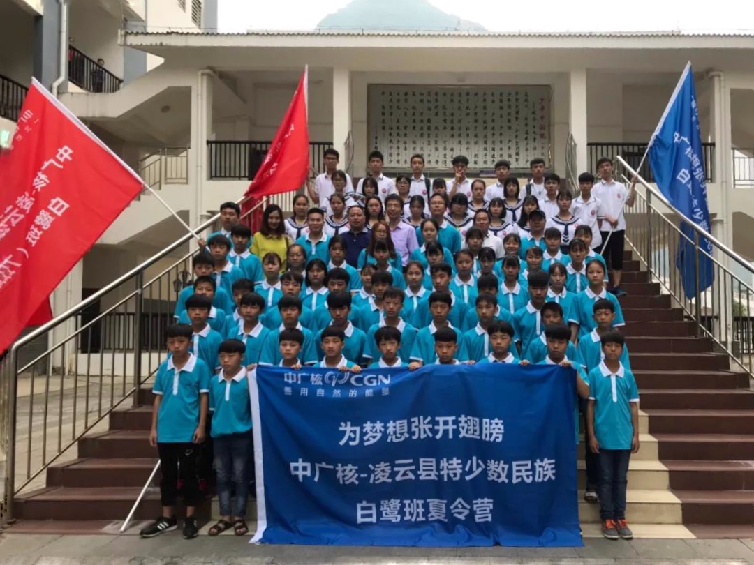 2019年初,中廣核聚焦留守兒童,在幫扶十余年之久的凌云縣覽金小學實施“彩虹計劃”,面向留守兒童組建“白鷺班”,實施彩虹課堂、彩虹助學、彩虹視界、彩虹家園等四大系列12項幫扶行動。2020年,中廣核克服新冠肺炎疫情的影響,通過多種方式開展有關活動:在學校設立“夢想信箱”征集到150件作品;累計收集可用校服4000余件,讓大山的孩子穿上和深圳小朋友一樣的校服;“海洋圖書館”落地,共捐贈9663冊圖書;開展“體驗科技之美,開拓白鷺視野”暑期活動;接力支教志愿者,趕赴學校開展“小三科”支教活動等。