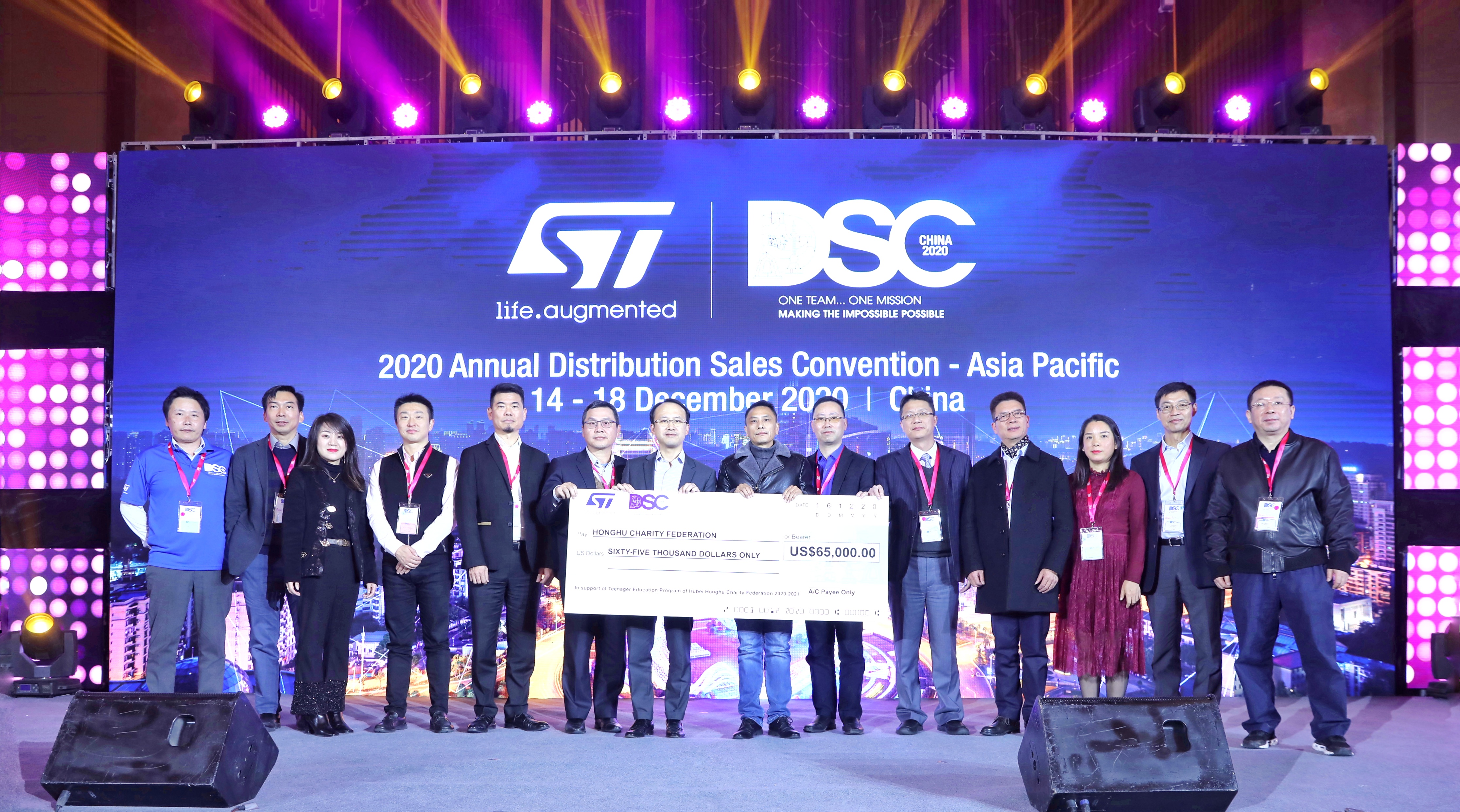 近日,意法半導體2020年度代理商大會在武漢召開,意法半導體攜手合作伙伴在會上共同發起為湖北洪湖新冠災區青少年助學計劃慈善捐贈的號召,以實際行動馳援湖北,一個月之內成功募集到資金約42.5萬元人民幣。
