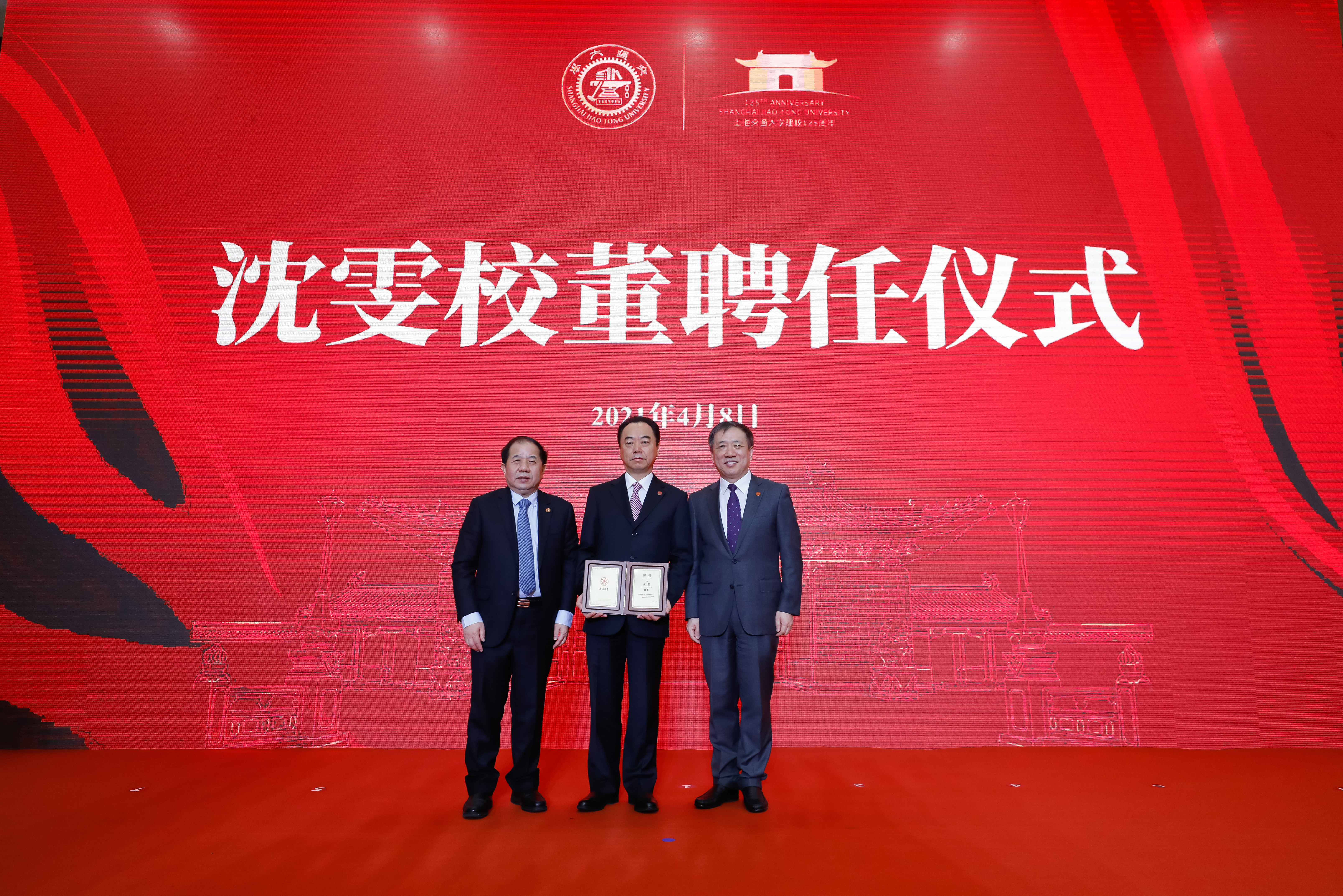 二O二一年四月八日上午,春風和煦、陽光明媚。在上海交通大學125周年校慶之際,沈雯校董聘任儀式在文博樓會議中心舉行。十二屆全國人大常委會副委員長嚴雋琪,上海交通大學黨委書記楊振斌,校長、中國工程院院士林忠欽,上海交通大學歷任老領導,閔行區委書記倪耀明,區委副書記、區長陳宇劍,中國工程院院士、瑞金醫院院長寧光,紫竹高新區董事長、總經理沈雯,常務副總經理夏光,以及閔行區、瑞金醫院、上海交大與高新區相關領導出席。儀式由上海交通大學副校長張安勝主持。