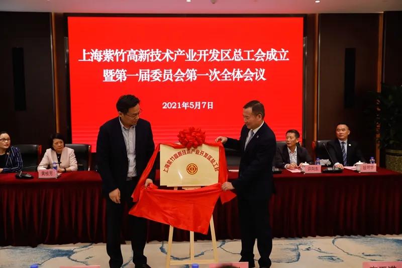 閔行區人大常委會副主任、區總工會主席倪學斌,高新區黨委書記、副總經理駱山鷹共同為上海紫竹高新技術產業開發區總工會揭牌。