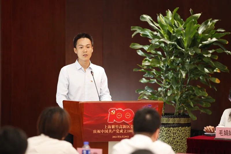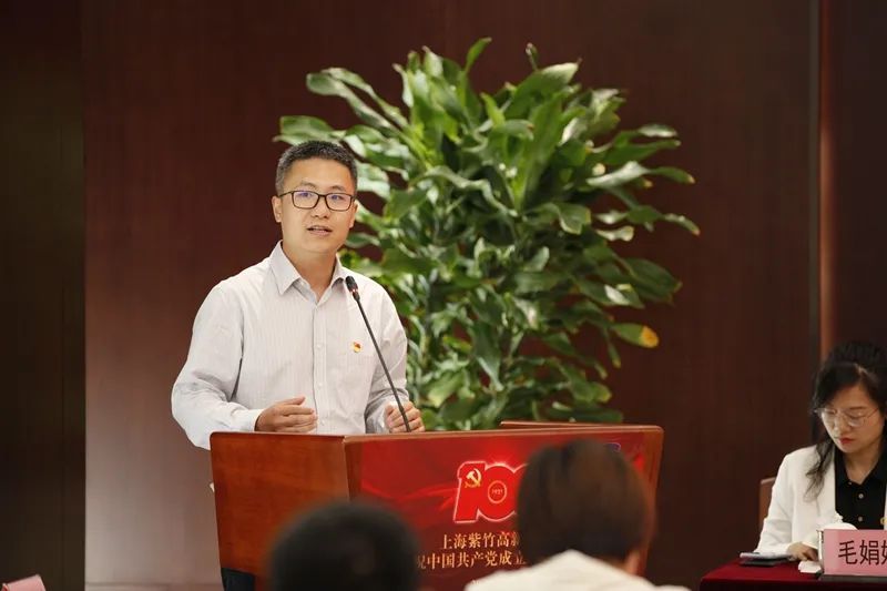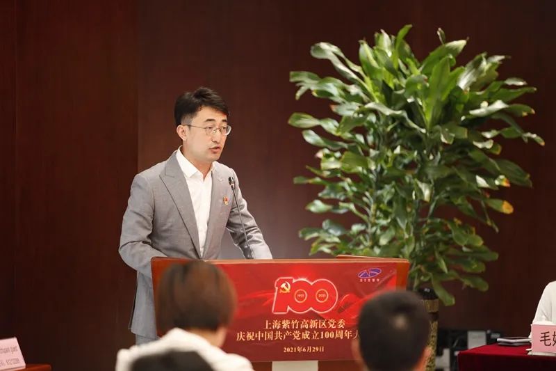 區委副書記、組織部部長王觀寶發表了熱情洋溢的講話,他與全體與會人員回顧了中國共產黨波瀾壯闊的百年奮斗史以及帶領中國人民走向民族復興的豪邁步伐,對紫竹高新區在黨的改革開放政策下開拓創新、積極進取所取得的不凡業績以及紫竹黨組織發揮出的戰斗堡壘作用表示充分的肯定。他表示回望百年奮斗史,是為更好地開創未來,希望全體黨員通過學黨史堅定理想信念,從黨史中汲取精神養料和工作動力,以優秀成績續寫光輝篇章。