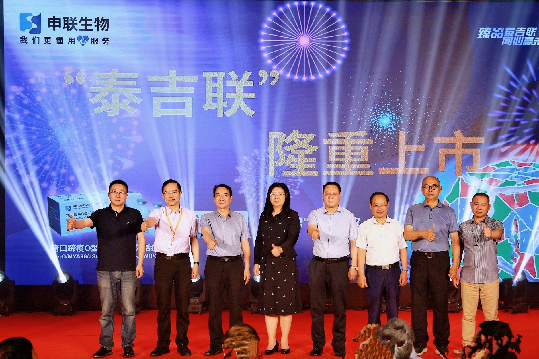 2021年6月18日,申聯(lián)之夜——“泰吉聯(lián)”上市發(fā)布會(huì)舉行,申聯(lián)生物董事長(zhǎng)聶東升、申聯(lián)生物總經(jīng)理高艷春、甘肅省畜牧獸醫(yī)局副局長(zhǎng)周生明、中國(guó)農(nóng)業(yè)大學(xué)楊漢春教授、南京農(nóng)業(yè)大學(xué)姜平教授、中國(guó)農(nóng)業(yè)科學(xué)院哈爾濱獸醫(yī)研究所仇華吉研究員、河南省養(yǎng)豬行業(yè)協(xié)會(huì)宋云海秘書(shū)長(zhǎng)、安徽農(nóng)業(yè)大學(xué)殷宗俊教授等共計(jì)400余嘉賓齊聚,共同見(jiàn)證口蹄疫防控新里程。