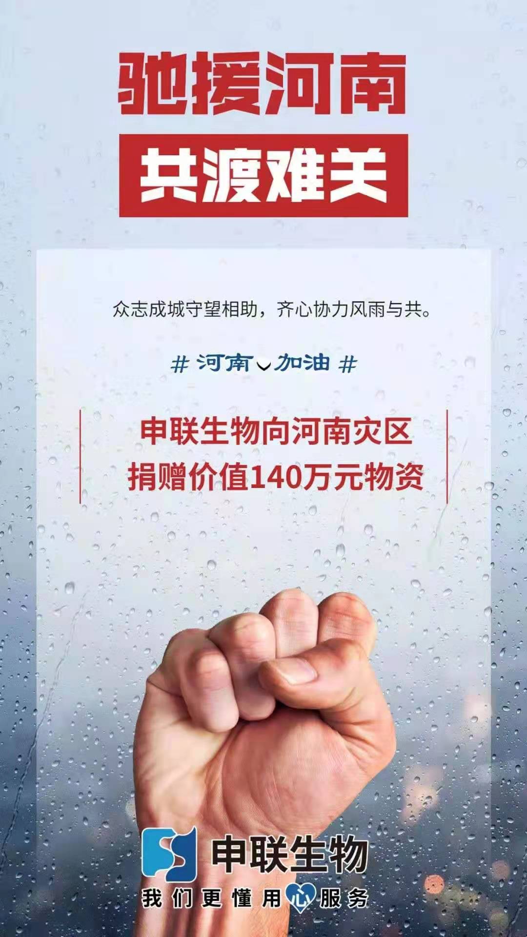 眾志成城守望相助,齊心協力風雨與共。申聯生物將持續關注河南汛情,全力助力政府與社會各界抗險救災。河南加油!我們同在!