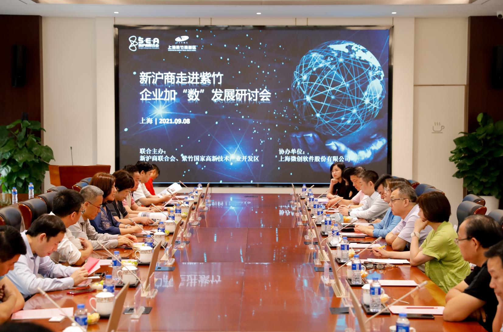 2021年9月8日下午,由紫竹高新區(qū)與上海新滬商聯(lián)合會(huì)共同主辦,微創(chuàng)軟件股份公司協(xié)辦的“走進(jìn)紫竹-企業(yè)加‘?dāng)?shù)’發(fā)展主題研討會(huì)”活動(dòng)圓滿舉行。市經(jīng)信委綜合規(guī)劃處處長(zhǎng)趙廣君、上海新滬商聯(lián)合會(huì)執(zhí)行秘書(shū)長(zhǎng)顏佳、微創(chuàng)軟件股份公司副總裁邢宇輝、吉爾多肽公司總經(jīng)理周敏,紫竹高新區(qū)招商總監(jiān)任曼與二十余位來(lái)自新滬商聯(lián)合會(huì)的企業(yè)家們相聚一堂,共話企業(yè)數(shù)字化轉(zhuǎn)型,共商共贏發(fā)展大計(jì)。