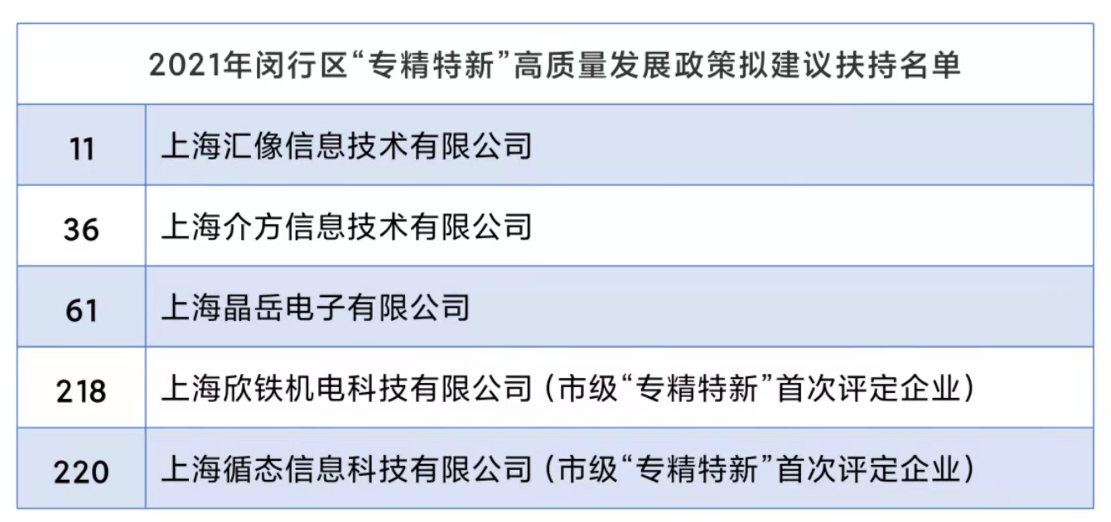 本月,根據(jù)《閔行區(qū)關(guān)于支持“專精特新”中小企業(yè)高質(zhì)量發(fā)展的專項扶持意見》,區(qū)經(jīng)委牽頭組織開展了2021年度區(qū)級“專精特新”中小企業(yè)認定以及市級“專精特新”中小企業(yè)、工信部專精特新“小巨人”企業(yè)、市公共服務機構(gòu)、國家服務示范平臺五大類項目的資質(zhì)認定和扶持資金評審工作。由紫竹孵化器培育的匯像信息、介方信息、晶岳電子榮獲區(qū)級“專精特新”企業(yè)稱號,欣鐵機電、循態(tài)信息獲得了市級“專精特新”首次評定企業(yè)稱號。