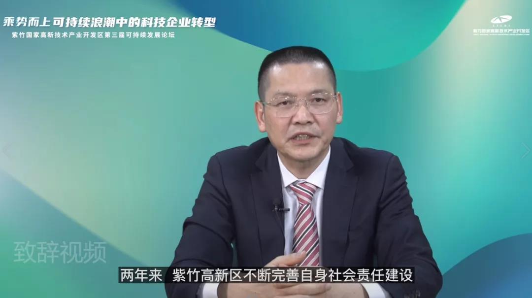 聯合國全球契約中國網絡執行秘書長韓斌、ISO 26000利益相關方全球網絡(SGN)聯席秘書長殷格非以及世界經濟論壇全球公共產品平臺大中華區總負責人朱春全以視頻的方式發來對論壇的慶賀,分別從2030聯合國可持續發展目標、企業社會責任以及經濟的角度,對全球形勢進行了介紹并對紫竹高新區可持續發展實踐表示贊許。