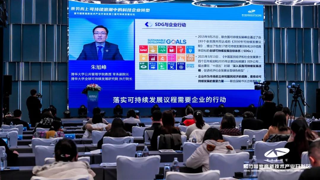 清華大學公共管理學院教授、常務副院長,清華大學全球可持續發展研究院執行院長朱旭峰以“落實可持續發展議程需要企業行動”為主題介紹了企業貢獻SDGs的途徑。