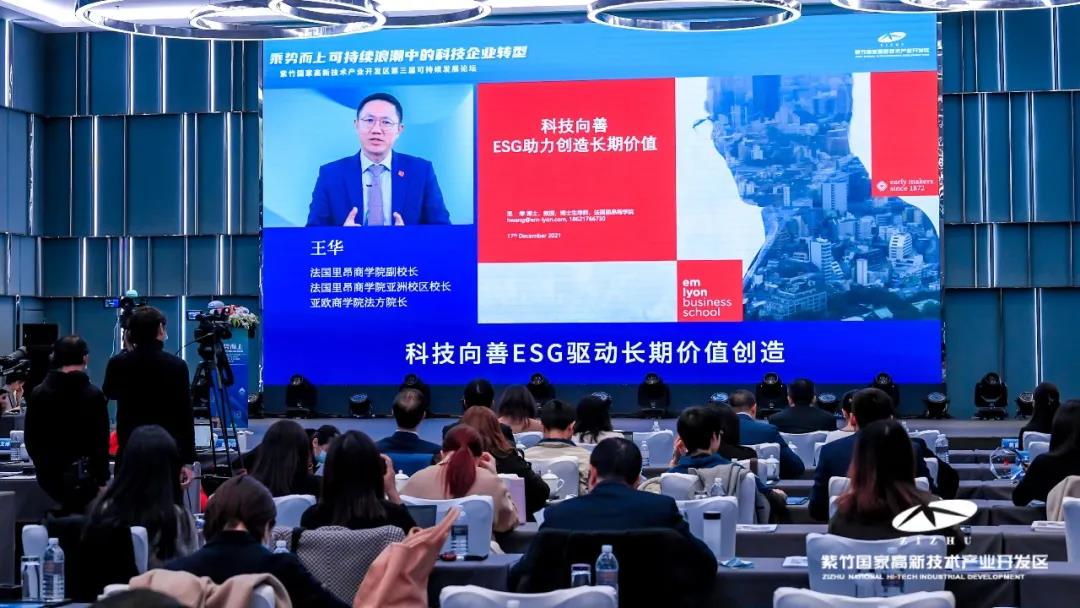 法國里昂商學院副校長、法國里昂商學院亞洲校區校長、亞歐商學院法方院長王華發表“科技向善ESG驅動長期價值創造”主題演講,闡述了企業ESG管理的重要性,并且通過案例介紹ESG如何助力中國企業全球化。