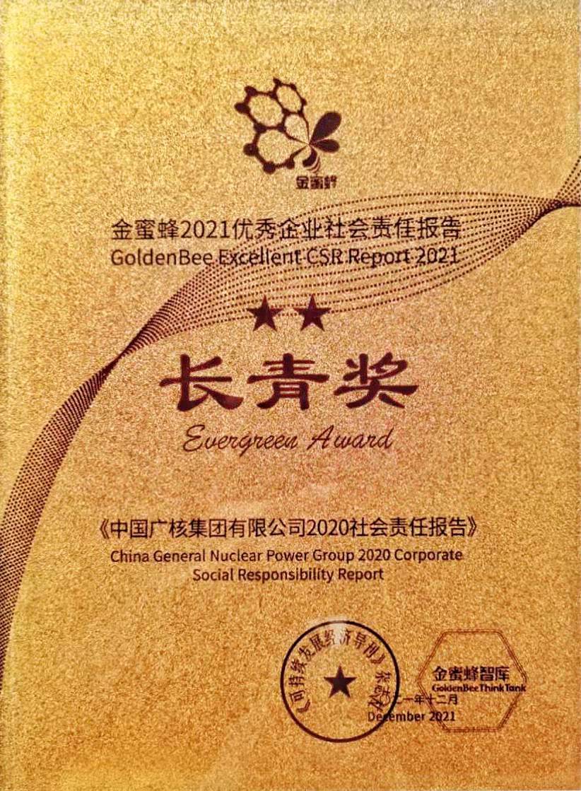 近日,第四屆金蜜蜂企業社會責任國際學術研討會暨第十四屆中國企業社會責任報告國際研討會在線上召開,“金蜜蜂2021優秀社會責任報告榜”同期發布。中國廣核集團編制的《中廣核2020社會責任報告》獲得“金蜜蜂2021優秀企業社會責任報告?長青獎”,這也是自2012年以來,中廣核連續九年獲得金蜜蜂優秀社會責任報告獎,并連續六年蟬聯長青獎。