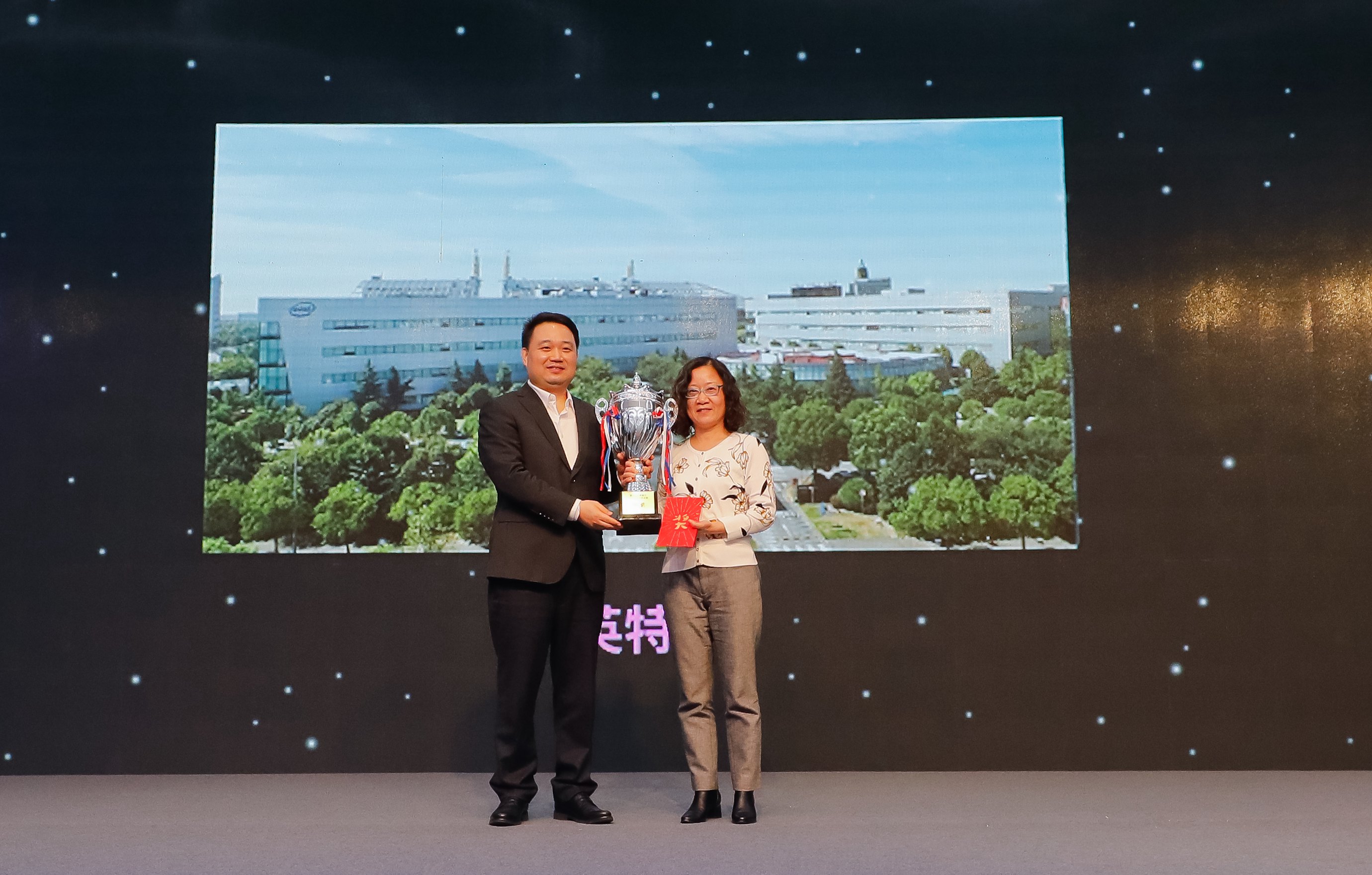 陳華文區長、趙亮副區長、沈雯董事長分別向可口可樂、英特爾和上海電氣風電集團股份有限公司頒發2021年度經濟貢獻金、銀、銅獎。