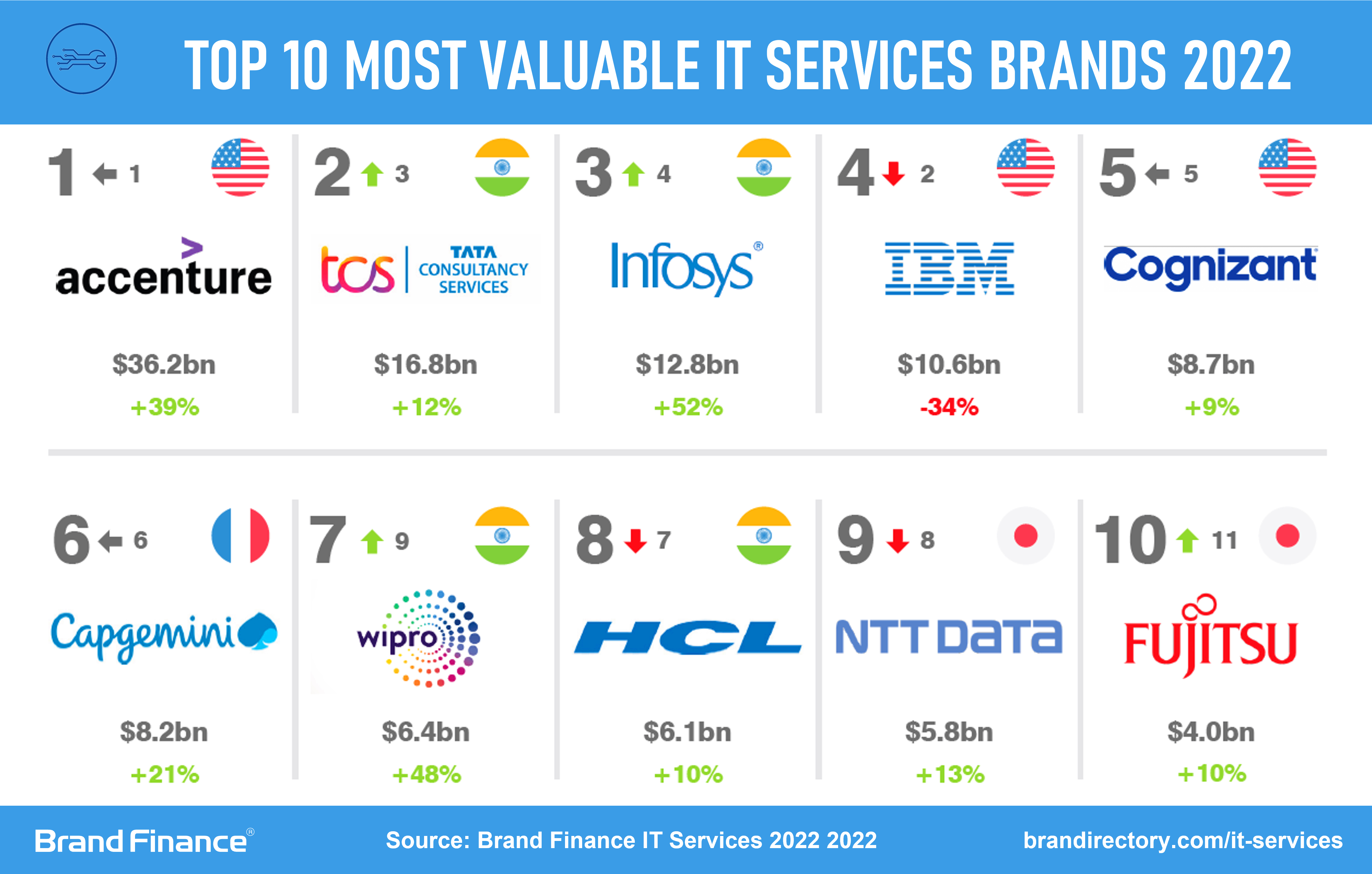 近日,印孚瑟斯被全球領先的品牌估值公司Brand Finance(英國品牌金融咨詢公司)在其《2022年全球500強》報告中評為增長最快的IT服務品牌。品牌估值見證了印孚瑟斯品牌增長的巨大飛躍,其品牌價值同比增長52%,自2020年以來增長超過80%,使其躋身全球最具價值IT服務品牌前三名。