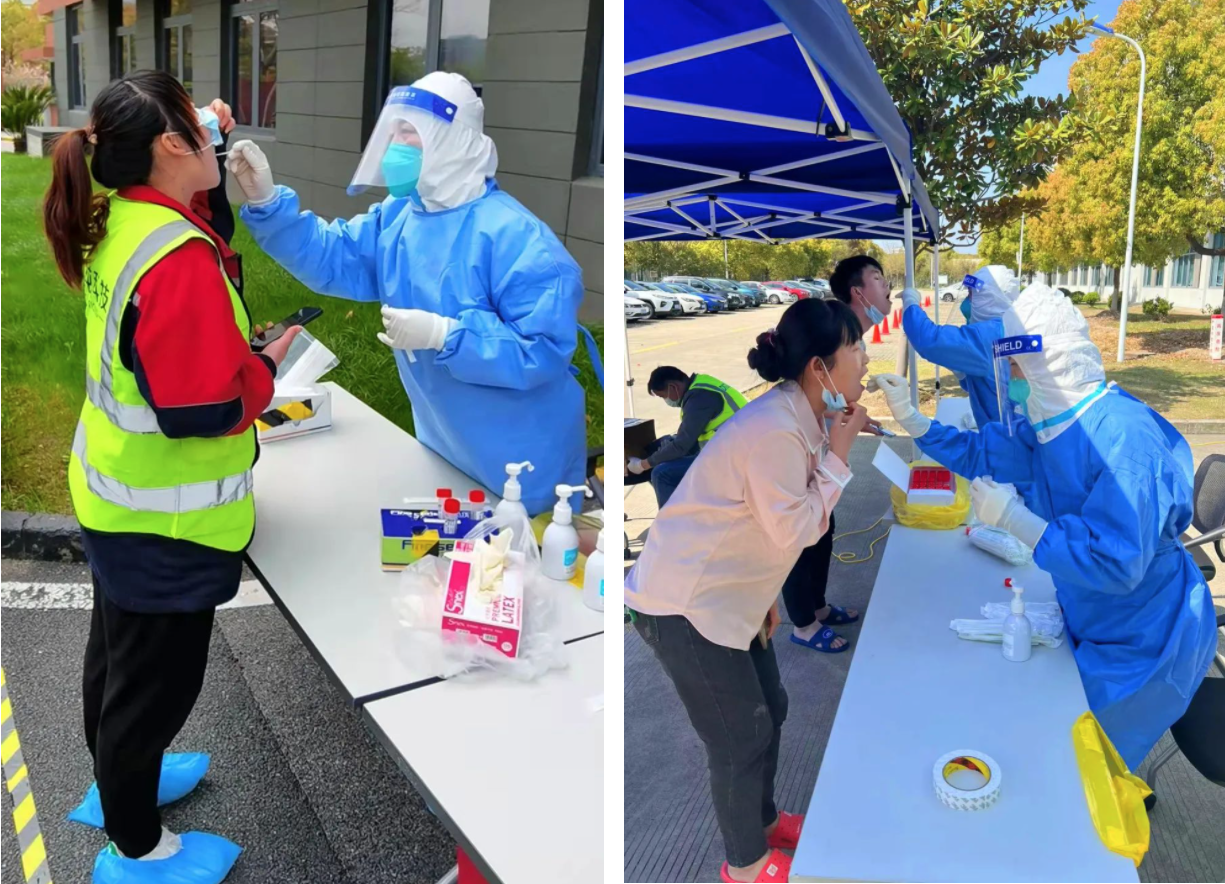 為保障全域封控期間封閉生產企業的生產秩序和企業員工的健康安全,減少非必要人員的聚集,紫竹商會會同總經理辦公室全力配合地方政府安排核酸采樣工作,在醫護緊缺的情況下,合理協調檢測資源,安排檢測時間,共設計三條核酸采樣路線,設立13個企業核酸采樣點位。
