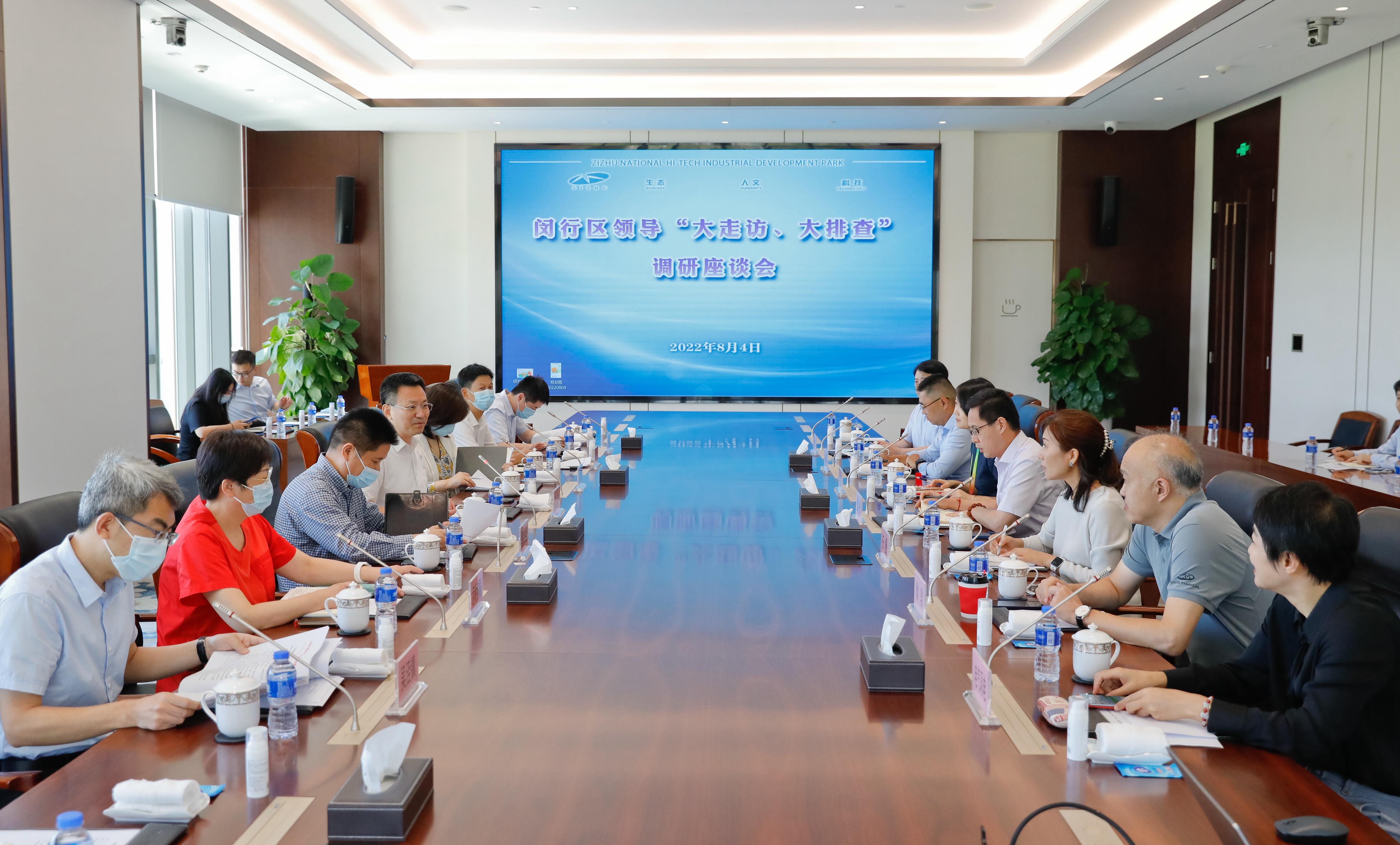 2022年8月4日,閔行區委副書記、區長陳華文一行來到紫竹高新區,聚焦重點企業與重大項目,深入一線做好企業服務,開展“大走訪、大排查”工作,為經濟穩增長賦能增勢。區府辦、區發改委、區財政局、區稅務局及吳涇鎮出席調研活動。