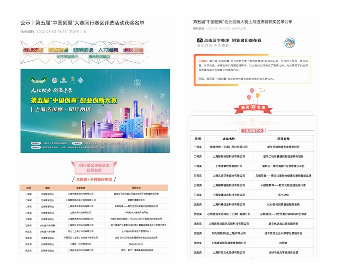 2022年8月3日,第五屆“中國創翼”創業創新大賽上海選拔賽及閔行賽區比賽成績正式公示。今年大賽歷時近4個月,閔行區共有301個項目報名參賽,報名項目涉及新材料新能源、裝備制造、文化創意、現代服務業、人工智能等領域。最終,經過層層選拔,嚴格評審,紫竹ET空間的上海井英科技有限公司等2家優秀企業從眾多參賽項目中脫穎而出,分別斬獲閔行賽區“主體賽服務業組”二、三等獎,紫竹ET空間推薦的參賽企業在該組別獲名次數量占全區三分之一。同時,以上2家企業還入圍上海市選拔賽決賽,其中1家斬獲市賽 “主體賽服務業組”三等獎。